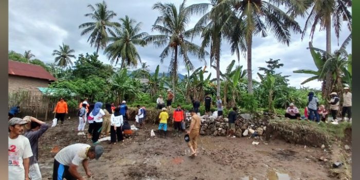 Ketum Satgas Jalan Lurus Herwan Rozali, SE Pimpin Gotong Royong Perbaikan Sementara Talud Way Tuba Yang Jebol.