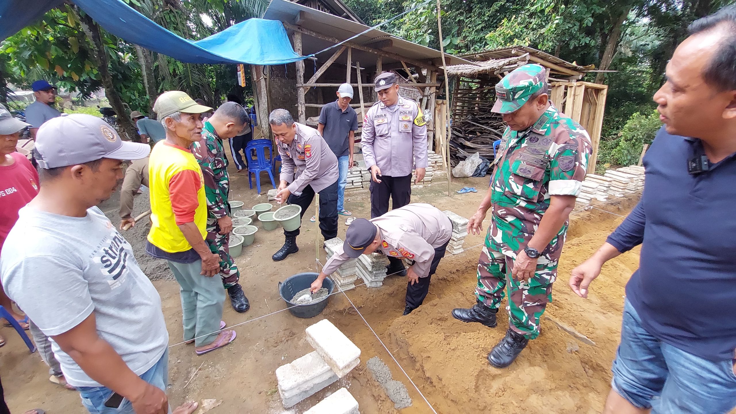 Alhamdulillah, berkat kepedulian TNI-Polri dan aparatur kampung, peletakan batu pertama Peletakan Batu Pertama dalam rangka Program Bedah Rumah Swadaya di mulai pada Sabtu (12/4/25).