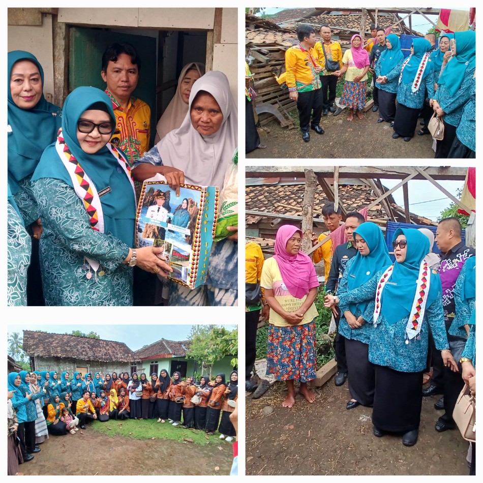 “Alhamdulillah hari ini Ketua TP PKK Tanggamus Hajah Siti Mahmudah dan jajjaran meninjau program bedah rumah Pak Junaidi di Pekon Suka bandung ini, bersama Kepala Dinas PMD, Kepala Dinas Sosial, Sekcam Talang Padang dan pejabat lainnya.