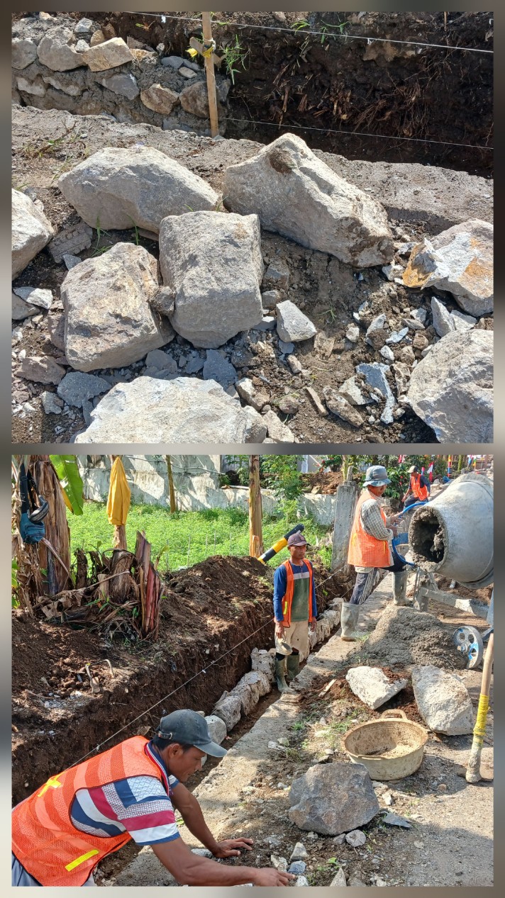 Selain itu kontruksi bangunan drainase juga diduga tidak sesuai spesifikasi (spek) kontruksi, sebab terlihat secara kasat mata pemasangan batu dinding talud drainase tidak memakai bantalan pondasi tanam 20 – 30 centi meter (cm). Sehingga diragukan kekuatan kontruksi proyek tersebut, untuk menopang lajur dinding talud drainase.